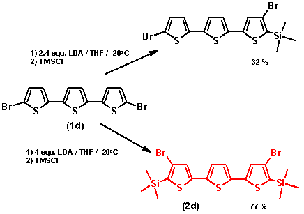 of the starting product (1d) in THF and its low rate for lithiation: