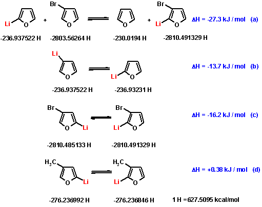The driving force for all these HD reactions is the formation of the finally most stable Li-intermediate, with the Li atom residing at the most acidic C-H position. We have undertaken first preliminary ab initio calculations with the best available and most appropriate basis set for these purposes (all results have been checked by frequency analysis after DFT calculation).