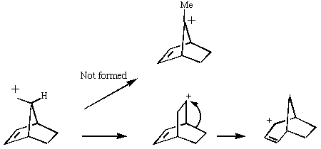 The only surprising result is that the MM method predicts that the tertiary carbonium ion is actually LESS stable than the preceeding primary ion, which is surprising to say the least. Clearly, electronic factors must be playing an important role as well. Suffice to say that even without ANY consideration of electronic factors, the MM2 method does not do too badly in its prediction of relative stabilities of this set of carbonium ions. This re-inforces the conclusion that bond angles in carbonium ions are just as important as substitution! Take a look for example at the angle contribution to the MM energies, which varies most. Also included are the semii-empirial (PM3) energies, which take into account lots of other factors, including effects such as hyper-conjugation, and p conjugation. In this particular system, the differences in these effects are only secondary in controlling the stability.