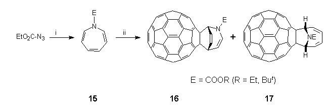 Scheme 8. Reagents and conditions: (i) benzene, h; (ii) C60.