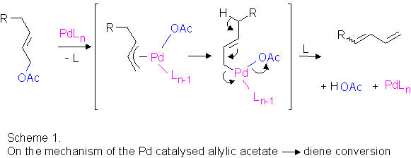 Some transition metal catalysts such as palladium and molybdenum complexes have already been shown to be effective in the preparation of 1,3-dienes from allylic acetates (Equations 1 and 2).[2]