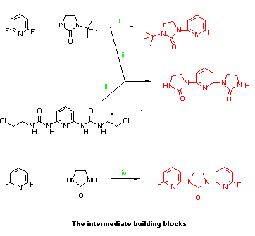 - 2,6-Bis(chloroethylureido)pyridine (2.15g), NaH (0.96g, 50%) and THF