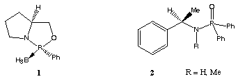 The 1,3,2-oxazaphospholidine borane complex 1 furnished secondary alcohols of good enantiomeric excess[5,1e]. This compound has the advantage of easy preparation and high stability. Wills et al. recently reported that chiral phosphinamides such as 2 are efficient catalysts for the asymmetric borane reduction of ketones[6].