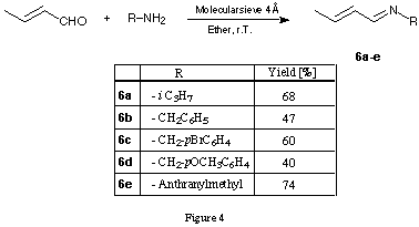 To a cold (0deg.C) solution of crotonaldehyde (14.02 g, 0.2 mol) and isopropylamine (11.82 g, 0.2 mol) in Et2O (70 ml) was added in small portions molecular sieve 4Å (80 g). After addition was complete the mixture was stirred during 4h at r.t.. The mixture was filtered and the molecular sieve was washed with Et2O (4 x 60 ml). Concentration of the filtrate and distillation (29 deg.C/11 Torr) of the crude product afforded the imine 6a (15.3 g, 68 %) as a colorless oil.