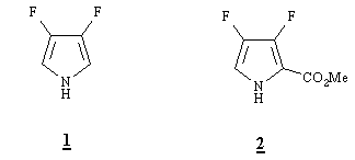 We recently described the synthesis of 3,4-difluoropyrrole (1) from 1-tert-butyl-2-(methoxycarbonyl)aziridine and chlorotrifluoroethylene [12]. We sought that the intermediate ester, 2-(methoxycarbonyl-3,4-difluoropyrrole) (2) could be a synthon of choice to acceed to 2,3,7,8,12,13,17,18-octafluoroporphyrin [OFP].