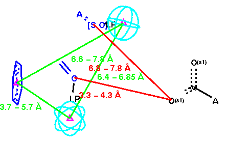 The second query, Q-2, is a pseudo-receptor translation of Q-1. In this case, the distances are not given in between the ligand atoms, but are given in between the projected receptor-site points. These points are obtained by projecting a virtual point along the direction of a lone-pair (or hydrogen) at a 3-Å distance from the ligand atom, and surrounded by an exclusion sphere with a 1-Å radius. The distances are tightened to 1-Å tolerance, based on the most rigid ACE inhibitor retrieved by this query. This query may be viewed as a receptor-based query; however it is based on a set of active ligands but not actual receptor-site information (hence the term pseudo-receptor based query).