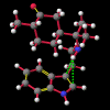 A significant finding in these studies was that there was some relationship between the C9=O9 group relative to the indole system. Certain anomalous results (KIJBAG, KUBMID) described in these papers - whereby the C9=O9 was pointing towards rather than away from the indole nucleus - were shown by NOE measurements in solution, and confirmed by molecular mechanics, to be entirely due to intermolecular hydrogen bonding and packing effects in the crystalline state, and therefore irrelevant to the functioning of the free molecule.