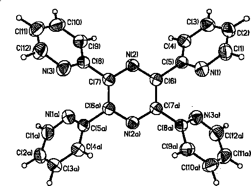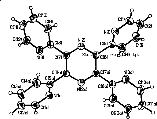 An interesting feature of the two forms of tpp, which was not explored in any of the previous reports, is the orientation of the pyridine rings with regard to the position of the pyridyl nitrogen atoms. The major difference between the tetragonal and monoclinic forms of tpp involves this aspect of the structure. The tpp molecules in both forms possess crystallographic Ci symmetry, but in the tetragonal form, the pyridyl nitrogen atoms of adjacent pyridine rings lie on the same side of pyrazine ring plane in an endo, exo-conformation, while in the monoclinic form the rings are rotated so that these atoms lie on opposite sides of the pyrazine plane in an endo, endo-conformation. As has been previously noted [8], the tetragonal form of tpp and dpq´ have similar dihedral angles and N--N distances; dpq´ also has a similar ring orientation as both of the pyridine nitrogen atoms are on the same side of the quinoxaline ring plane (Fig. S3)). The monoclinic form of tpp, dpp and dpq also have similar dihedral angles and N--N distances, and all have the nitrogen atoms of adjacent pyridine rings on opposite sides of the diazine ring plane (Fig. S4).