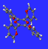 Structures 3 and 4 of Table 1 were obtained by performing an energy minimization of the polymorphs 1 and 2 respectively. The geometry minimization resulted in structures only slightly different from the respective starting rotomers. We observe a small, but significant energy difference between the two forms. MOPAC predicts that the monoclinic polymorph will be approximately 2 kcal/mol lower in energy than the tetragonal in the gas phase. If the MOPAC energy minimization is run so as to simulate the environment of a polar solvent (see experimental section for details) the difference in energy between the two forms becomes negligible (structures 5 and 6).