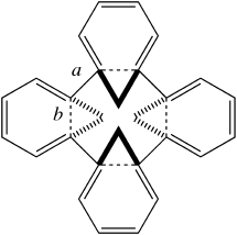 It was a highly unexpected outcome of a nickel-catalyzed reaction and was described as a 24-annulene with an unusual 3D shape. Little attention has been paid to this molecule since its original report, but the focus has now returned! The reason is that a 24- annulene belongs formally to a class of molecule with 4n (n=6) π-electrons, and which makes it antiaromatic according to the (extended) Hückel rule. This is a select class of molecule, of which the first two members are cyclobutadiene and cyclo-octatetraene. The first of these is exceptionally reactive and unstable and is the archetypal anti-aromatic molecule. The second is not actually unstable, but it is reactive and conventional wisdom has it that it avoids the undesirable antiaromaticity by adopting a highly non-planar tub shape and hence instead adopts reactive non-aromaticity. Both these examples have localized double bonds, a great contrast with the molecule which sandwiches them, cyclo-hexatriene (i.e. benzene). The reason for the resurgent interest is that a number of crystalline, apparently stable, antiaromatic molecules have recently been discovered, and ostensibly, molecule 1 belongs to this select class!